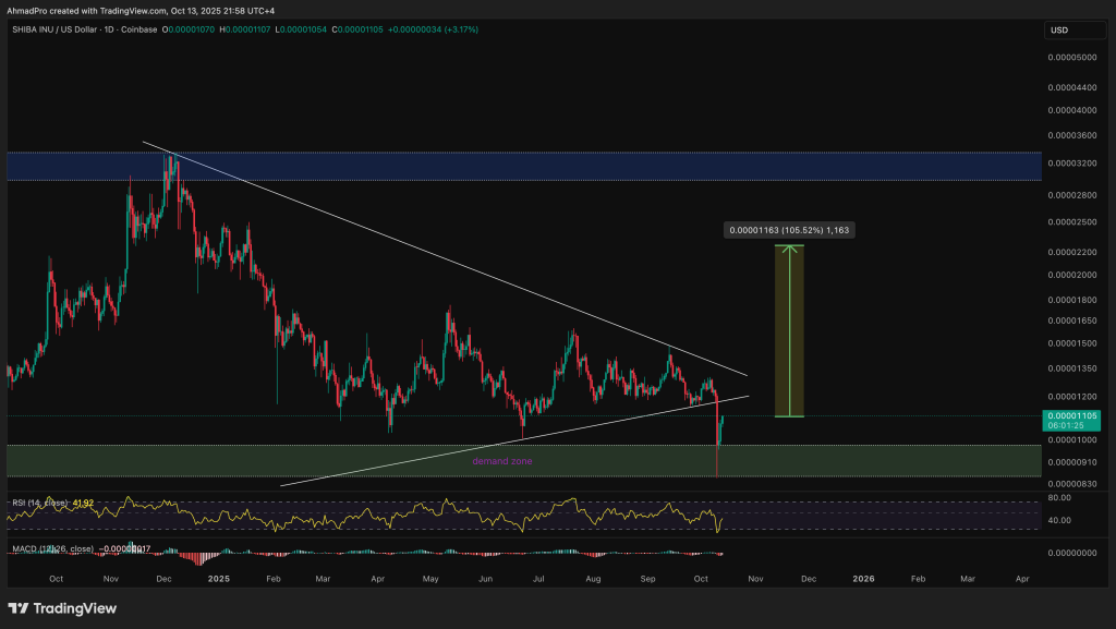 As long as SHIB stays above that demand zone, the chart leans bullish with a solid chance at a reversal rally ahead.