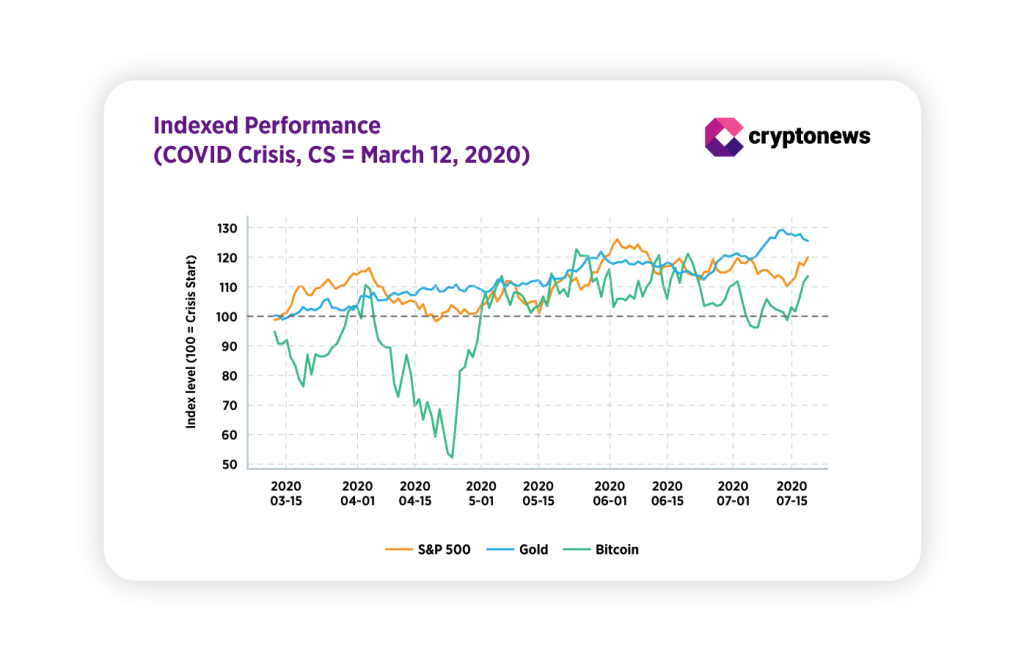 Gold. Gold worked as a short-term safety asset during the crisis. By the time the S&P 500 hit its lowest point, gold was already trading higher than at the start of the crisis and kept showing positive returns in the following months. Its stable price made it the most reliable short-term safe haven and helped it hold value throughout the recovery.