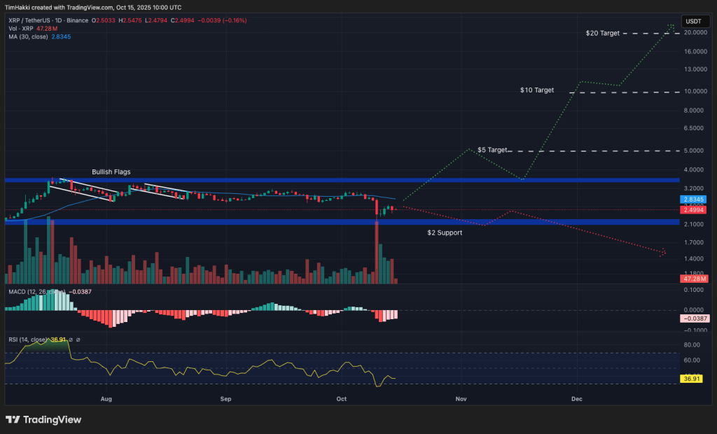 Technical analysis shows two bullish flag formations on XRP’s summer charts. If ETF approvals materialize by mid-October, renewed optimism could propel XRP into the $5–$10 range.