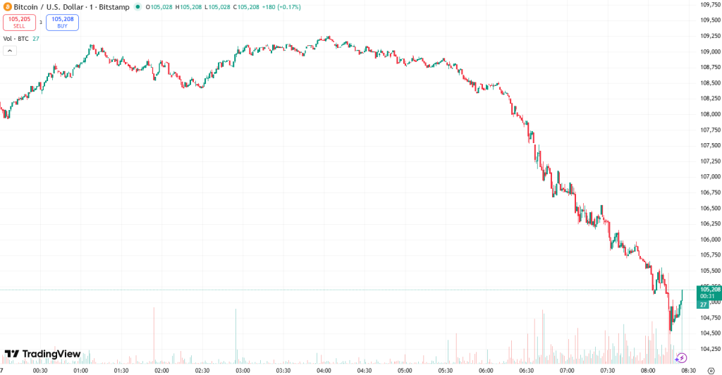 At the time of writing on Friday morning, BTC trades at $105,732. The coin recorded a sharp drop from the intraday high of $111,758 to the low of $105,149.