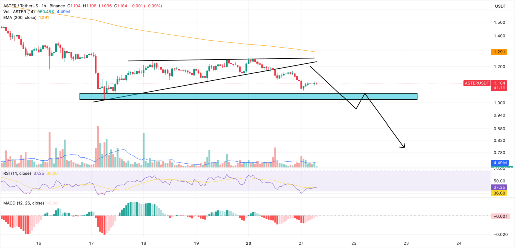 If the downtrend continues, it is highly likely that ASTER will drop to $1. This psychological threshold has already acted as a strong bouncing pad in the 1-hour time frame. However, if the price drops below that mark, the odds favor a much deeper correction toward $0.80 or lower.