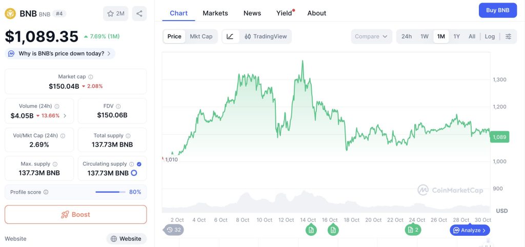 BNB Holds Firm Above $1K Amid Rising Institutional Interest