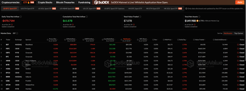 The US Bitcoin spot exchange-traded funds (ETFs) saw a sharp reversal on Wednesday, recording $470.7 million in outflows, according to data from SoSoValue.