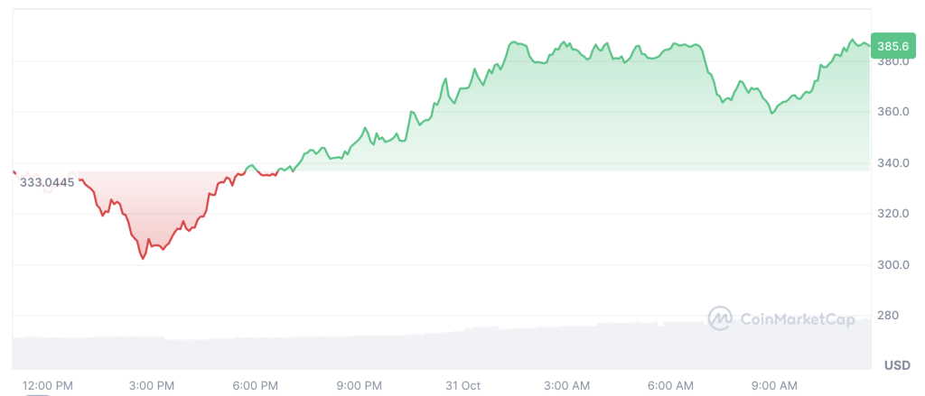 Zcash now changes hands around $385, higher by 14% on the day, and desk commentary ties the advance to a privacy driven bid that has been visible this week, with more stable two way flow and cleaner ladders at key levels enabling accumulation without disorderly gaps.